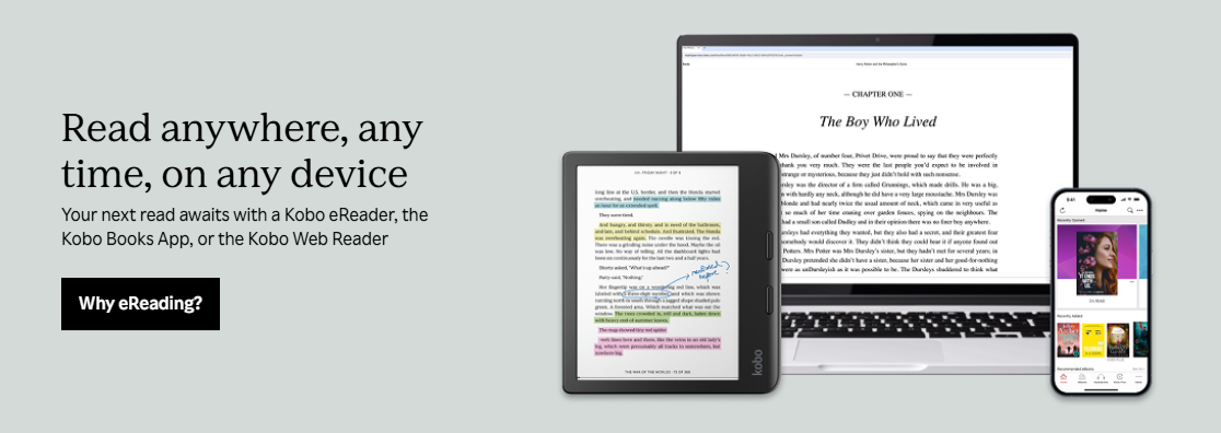 A Kobo is an eReader developed by Kobo, Inc. The Kobo eReader line products all use electronic ink screens on their devices, allowing the text to look sharper and better in natural sunlight than you might otherwise see on a computer, smartphone, or tablet screen.